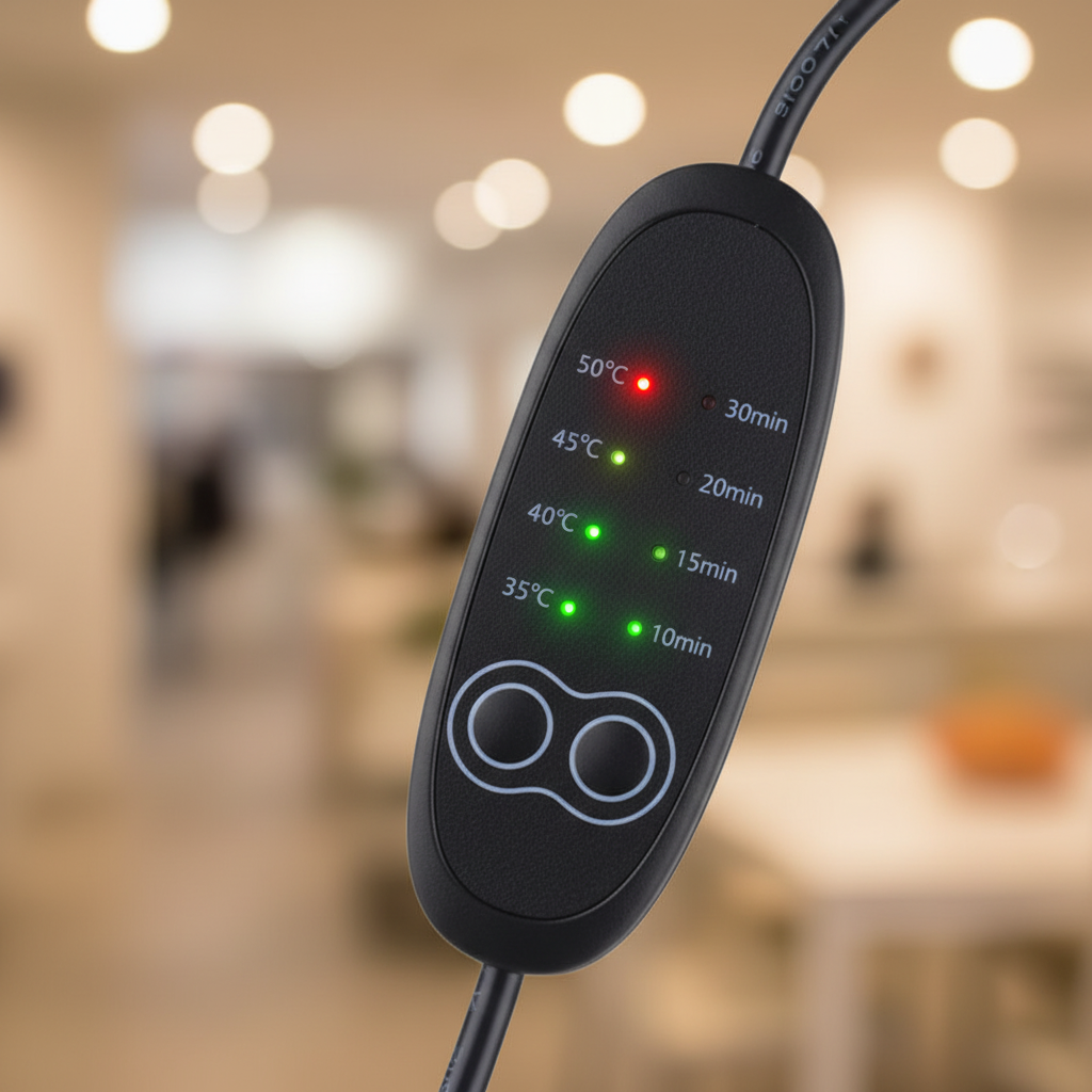 Choose from 4 heat levels and timer options (10–30 minutes) for your ideal comfort. Enjoy the freedom to rest without worry — it automatically turns off once your session ends, ensuring safety and peace of mind.